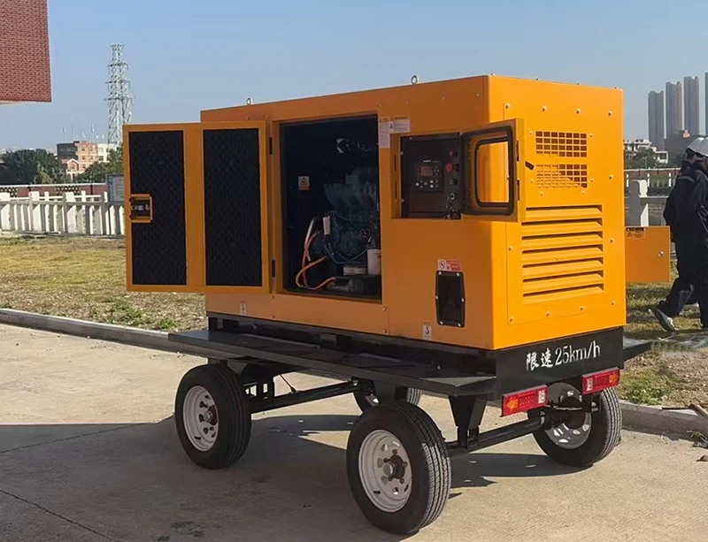 L'ensemble de générateurs diesel mobile est largement utilisé dans les activités militaires, à grande échelle et autres occasions où une alimentation temporaire est nécessaire. En tant qu'alimentation de secours pour le réseau d'alimentation, il convient particulièrement aux environnements avec une alimentation serrée et des exigences élevées de protection de l'environnement. Les ensembles de générateurs de types de remorque mobile peuvent être placés à l'intérieur ou à l'extérieur, de l'économie d'espace et du coût de la construction d'une salle de générateur.